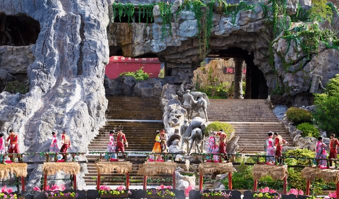 走进景区,就遇到了一场在马邦广场的表演《笑擒刘一刀》,虽然六月还不是旅游的旺季,但是千古情景区里面已经是游客爆满了。这场表演是属于幽默诙谐类型的,既有传统的元素,又很好的结合了时代的特色,个人特别的喜欢。