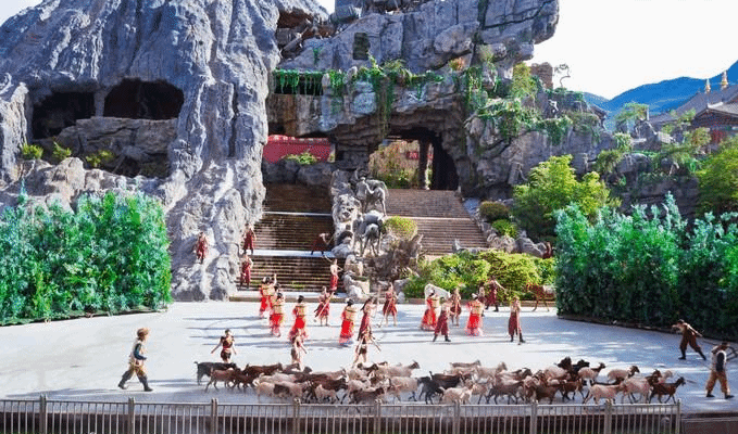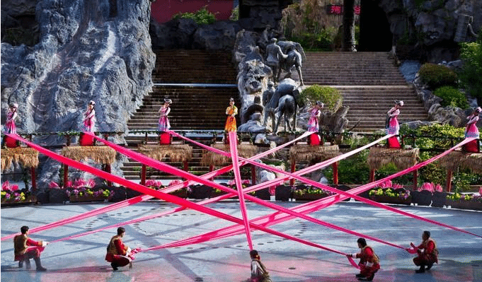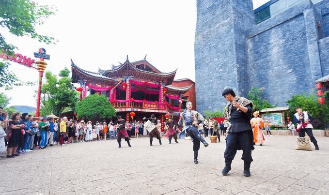 “丽江千古情”景区位于距离大研古城七公里左右的丽江新城,是由“宋城演艺”打造的一个人文旅游景观。丽江因茶马古道而起,也因茶马古道而兴,然而随着历史的变迁,如今的茶马古道已经失去了曾经的重要意义。但人们不会忘记历史,千古情景区着力打造了一座活着的“茶马古城”。