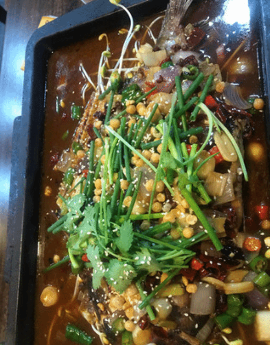 他们家烤鱼真的超好吃。鱼很鲜嫩,可以自己选择辣度。我们选的中辣,刚刚好(比较能吃辣)。本来还担心3人吃不够,结果都吃很饱了。