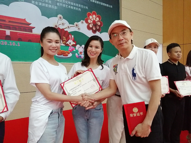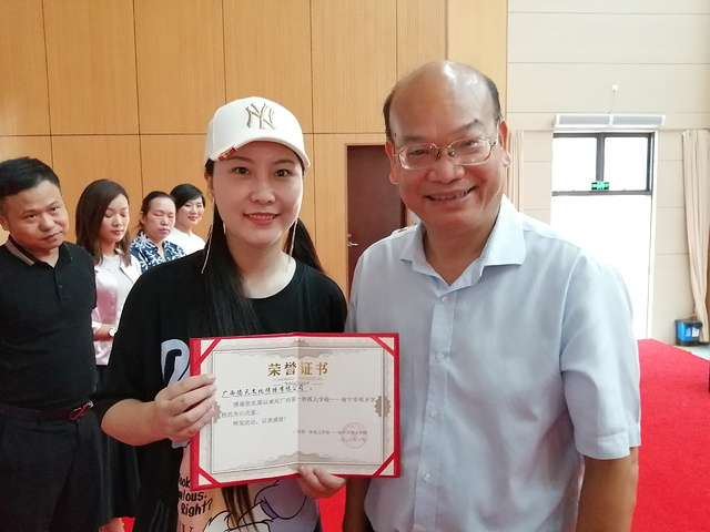 “迎中秋•庆国庆——民建文艺走基层公益慰问演出活动”中, 广西民建知名画家、金环球艺术教育机构负责人黄环球专门为南宁市明天学校创作了一幅题为《奋斗与希望》的水彩画现场捐赠。 学校给爱心企业和人士颁发了证书。