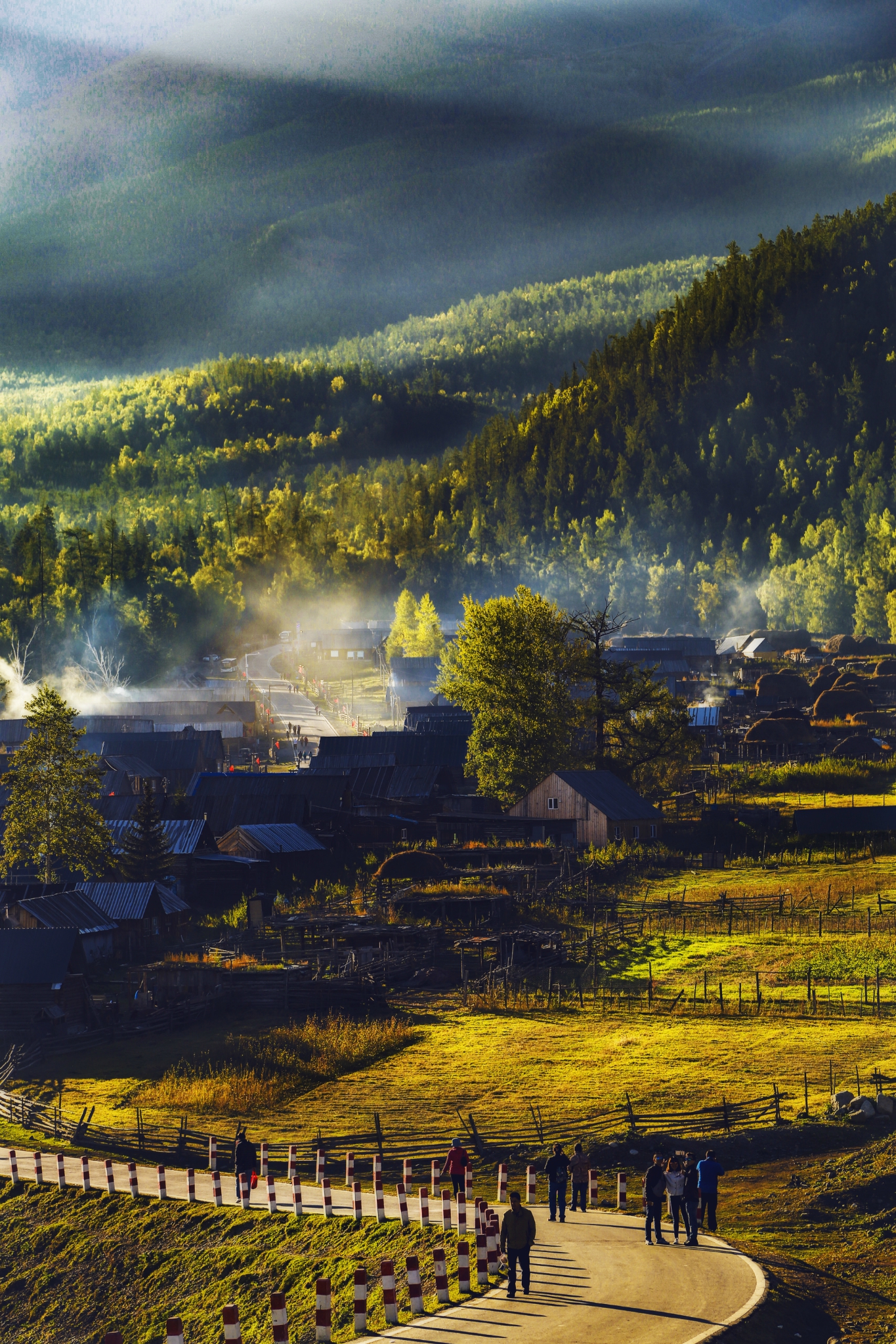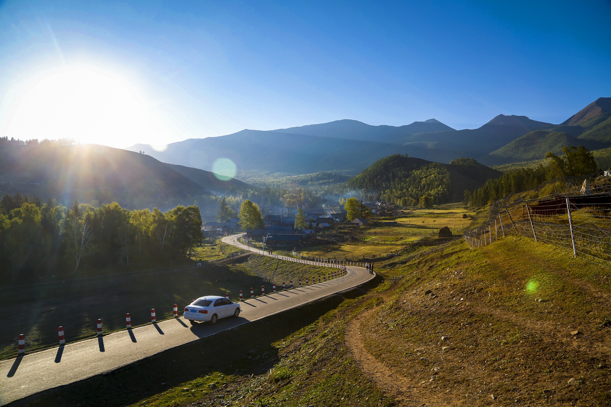 白哈巴沐浴在一片宁静祥和的晨光中