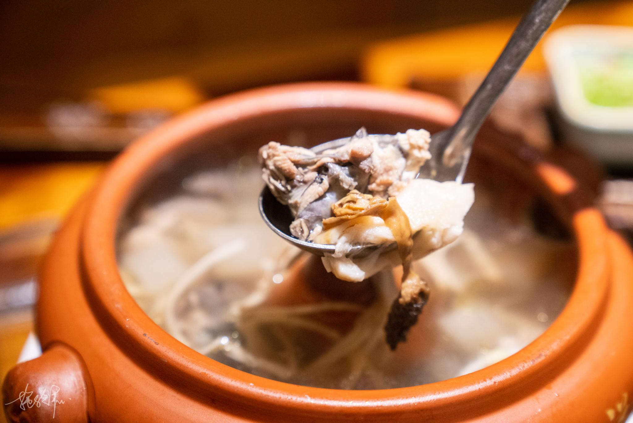 云南正气汽锅鸡的份量不大,两三个人小份的量刚刚好,里面依然有好几款菌子,餐前来一碗汤,对胃真的不要太温柔了。