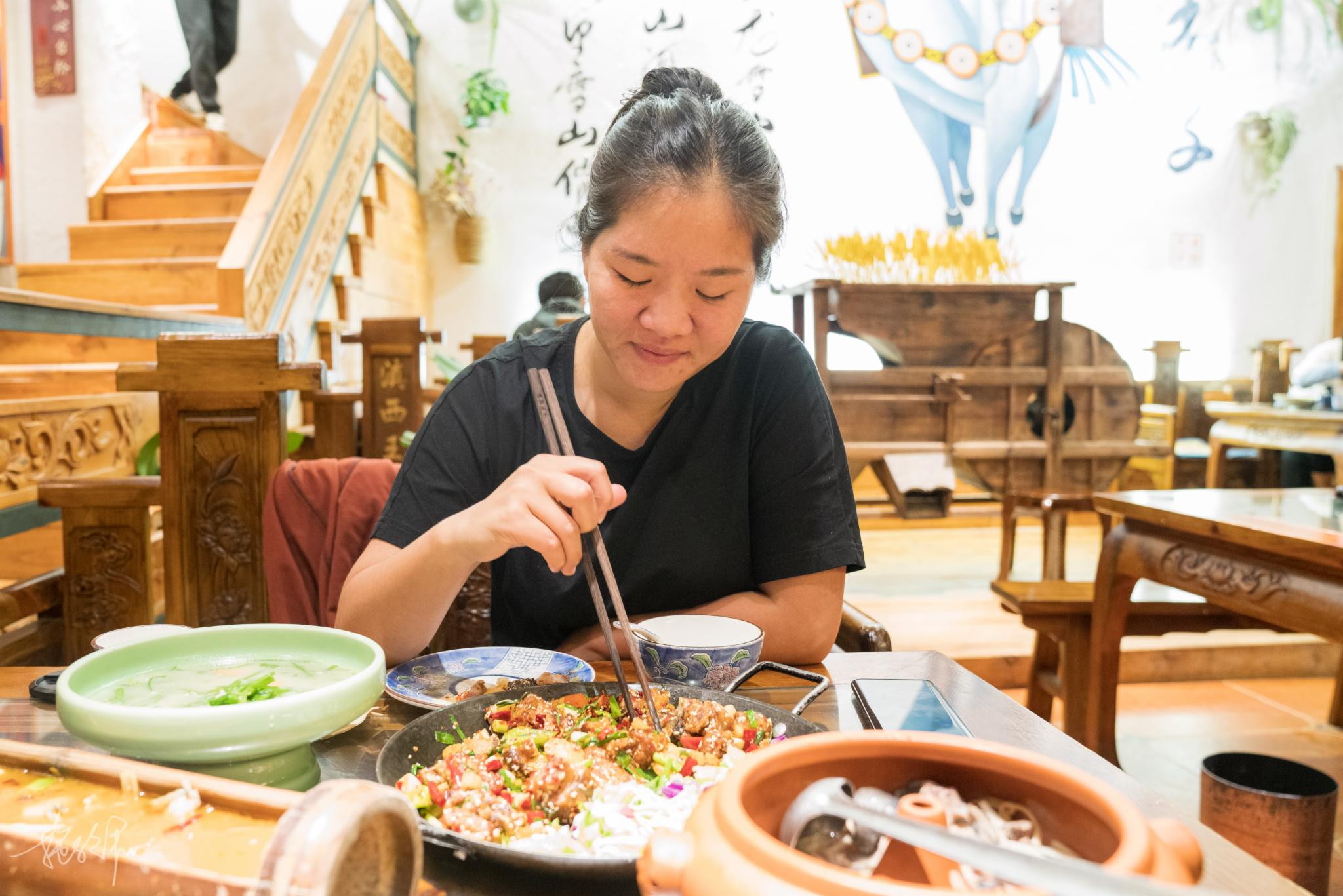 我们叫了顺风车来的十和院客栈,就在文明巷靠大马路边,不需要拖着行李箱走在古城的感觉真的太好了。放下行李以后,饥肠辘辘的我们出门准备觅食。