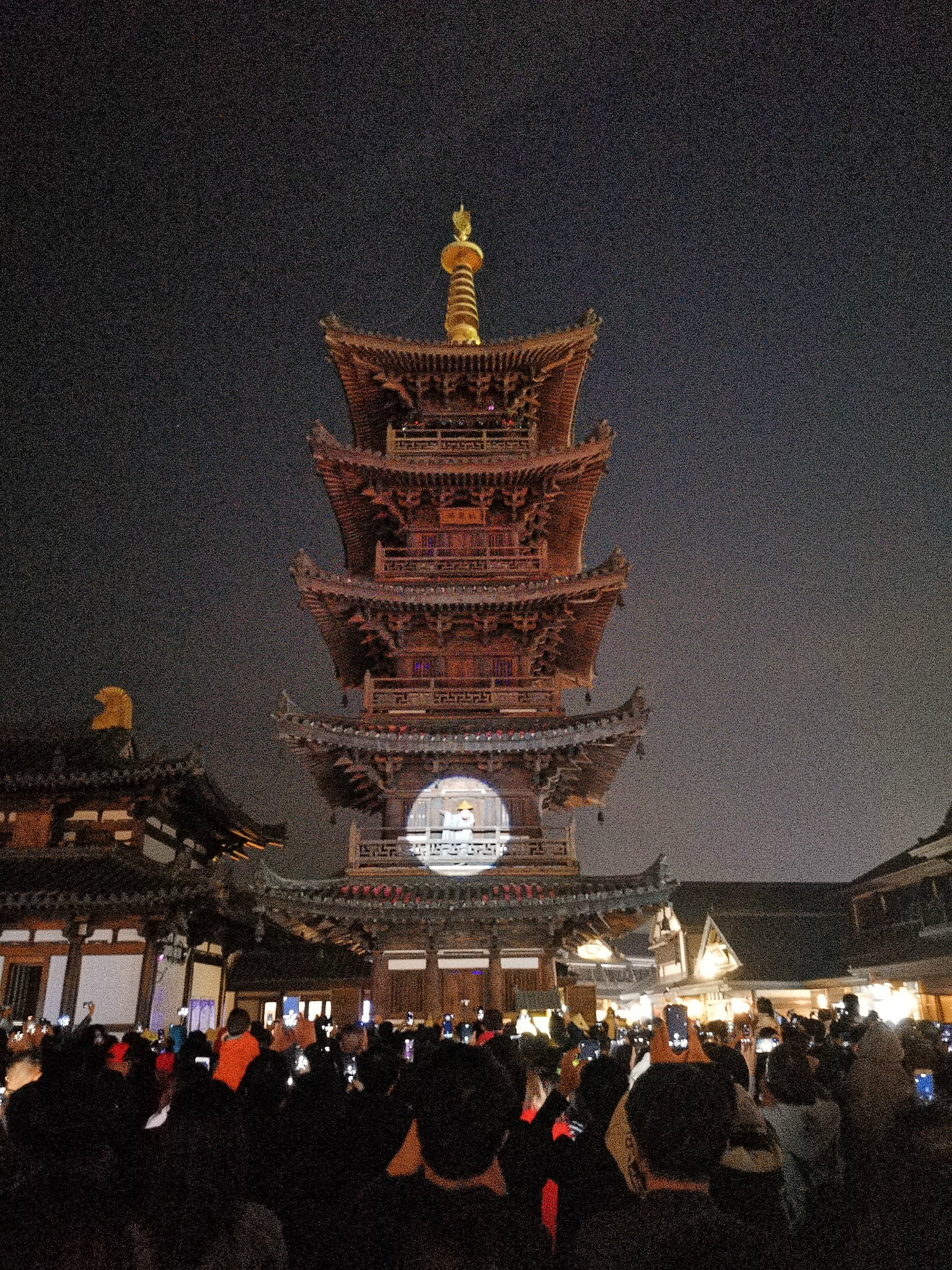 无锡拈花湾景区内最高的建筑了,到了晚上还有亮灯的仪式,有几场演出,所以要看时间,亮灯的演出时间大概15分钟,最后的灯光秀的效果比较好,前期的故事效果挺一般的,白天的时候也是一个很适合拍照的地方。