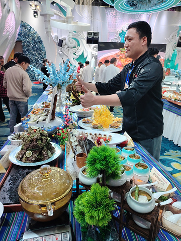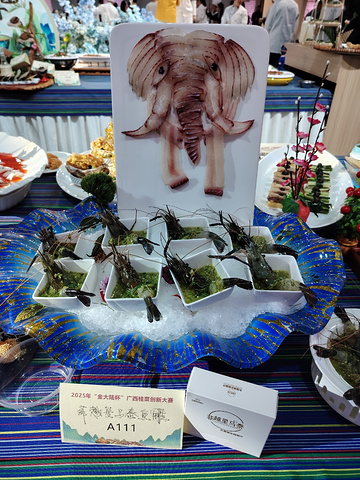 在2025广西桂菜创新大赛的现场,看到那场面,简直是美食界的“百花争艳”,每一道菜的摆盘都像是艺术品,让人目不暇接,手机相机咔嚓声此起彼伏,简直比追星现场还热闹! 看到了熟悉的菲越星马泰的菜,前阵子刚吃过的泰式生腌虾,太喜欢这个菜了,这次加了个“鱼雕”,太更好看了。这次还有东南亚火山骨参赛,试吃了一小块,味道好极了。