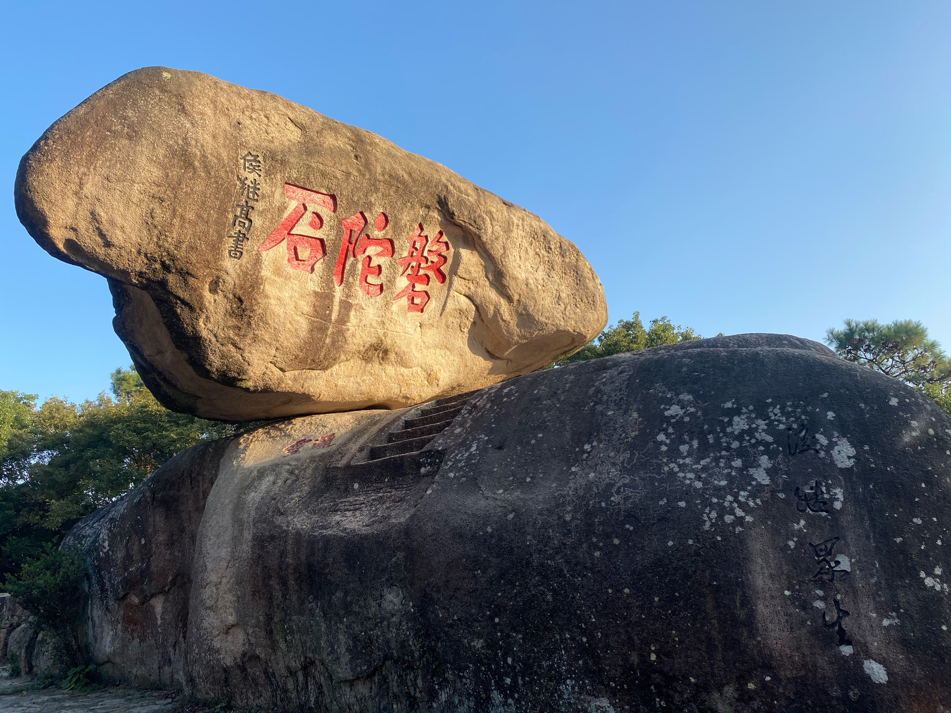 石头上有明代抗倭将军侯继高题写的“磐陀石”三字,