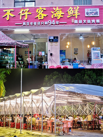 - 逛完免税店肚饿不行了 被我挖到一家宝藏海鲜店‼️ - 🌟环境一共三层,接地气的大排档,干净卫生!这家海鲜店离百年老店只剩94年‼️海鲜都是明码标价很靠谱,连本地人都推荐的!果然是【不仔客】~ - ✨鲍鱼文昌鸡 他们家的鲍鱼文昌鸡是首创哦,新鲜的大虾、滑嫩的文昌鸡、爽口的鲍鱼、还有入味花螺!汤底很鲜甜~吃到差不多可以加入蔬菜,吸收汤底的精华很满足! - ✨椒盐皮皮虾 XXXXL的皮皮虾,店员还会帮忙剥虾,这个服务太贴心啦吧,完全不用自己动手,肉质鲜嫩弹牙,椒盐做法更香! - ✨清蒸波士顿龙虾 期待已久的龙虾,一整只上桌!上面铺满蒜蓉粉丝,肉质扎实,鲜嫩爽口! - ✨高压锅生蚝 有一个高压锅开锅仪式!满满的仪式感~今天吃蚝,祝您豪气冲天!一个有八个生蚝,个头都很大只!蘸上柠檬汁和海鲜汁,鲜甜肥美! - ✨黄金海胆豆腐煲 豆腐铺满金黄色的海胆,豆腐是炸过的所以外脆内嫩,加上咸鲜的海胆口感更丰富! - 🌟不但性价比很高!服务也很🉑️!里面的店员都很热情,可以说是海鲜届里的海底捞~ - 📒打卡小TIPS 海棠湾5公里内可免费接送 (提前电话预约就可) - 🦞不仔客海鲜(亚特兰蒂斯店) 📍 泰安路22号 (距离亚特兰蒂斯C秀1100米) ⏰11:00-23:00