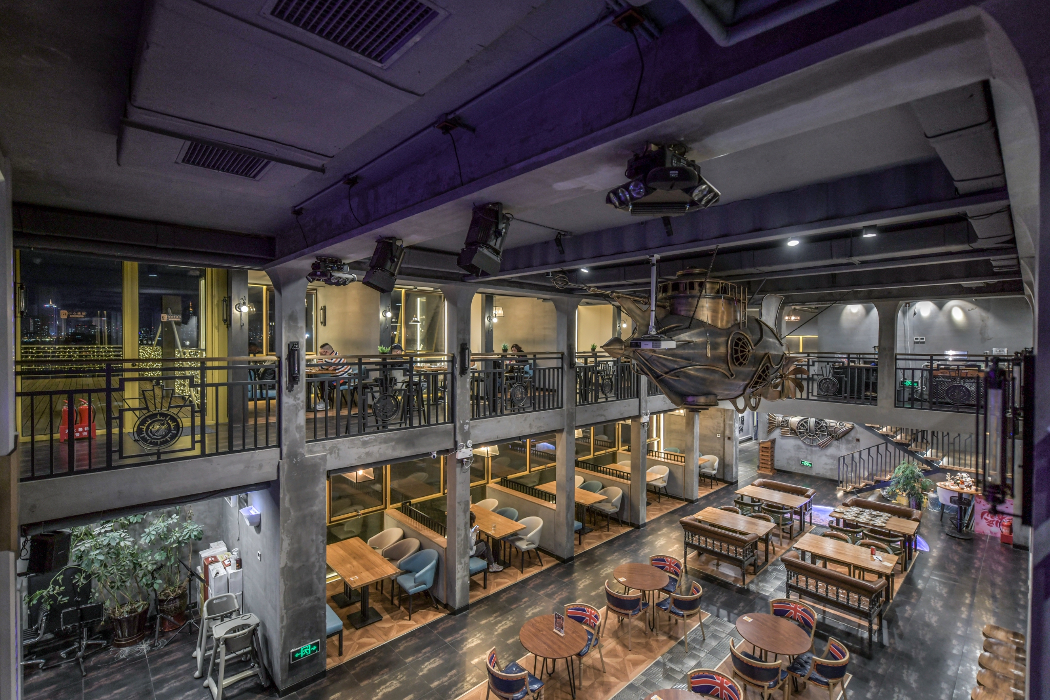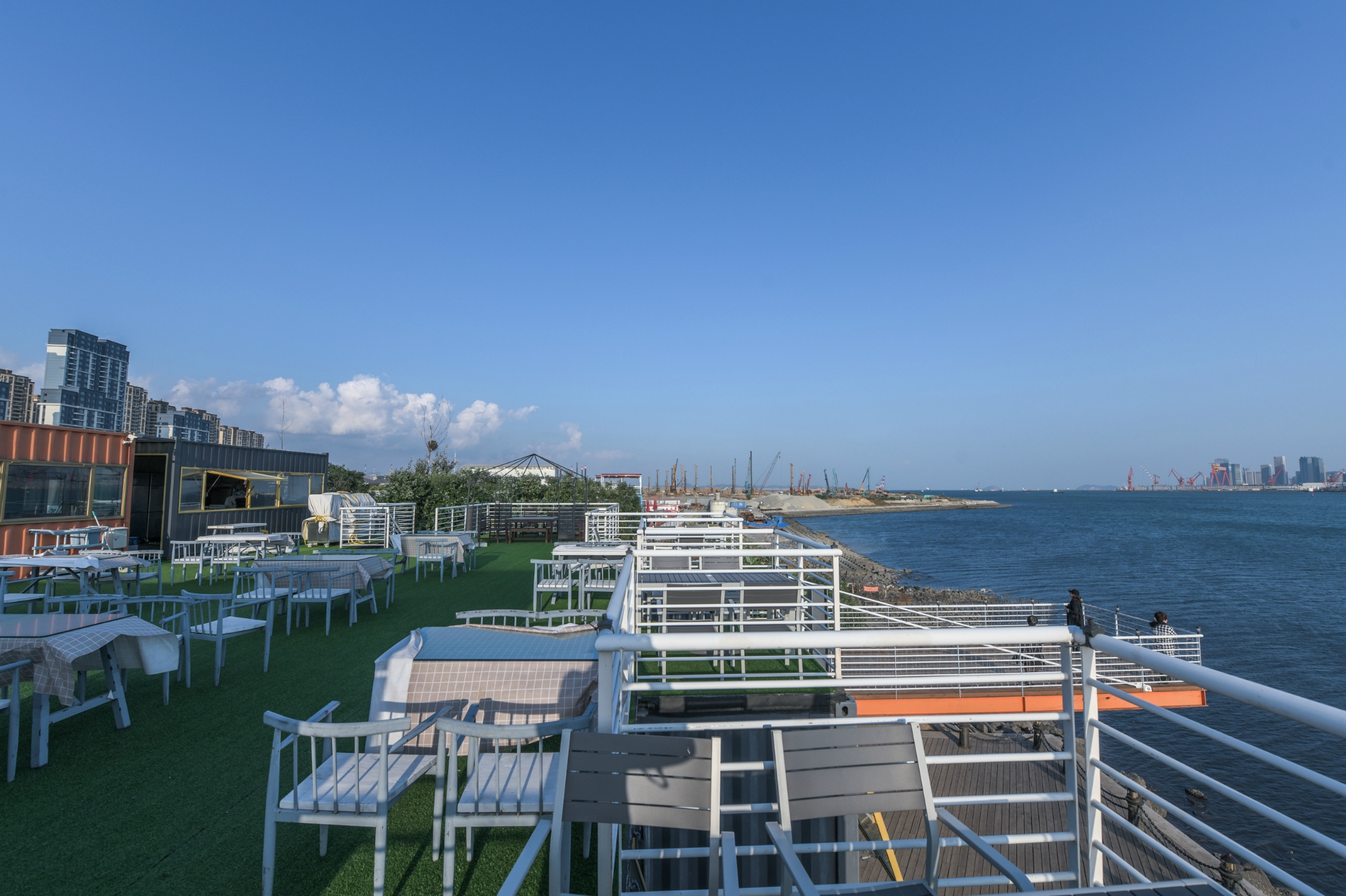 在二楼往下看才发现每个餐厅的位置都是独立隔开的,仔细观察才会看得出是集装箱的样子。工业风的餐厅在大连不少见,但是这种带有小资与小清风格调的工业风餐厅还是不算太多,尤其是在观景方面更是如此。另外,该餐厅是整个大连市规模最大的集装箱餐厅。
