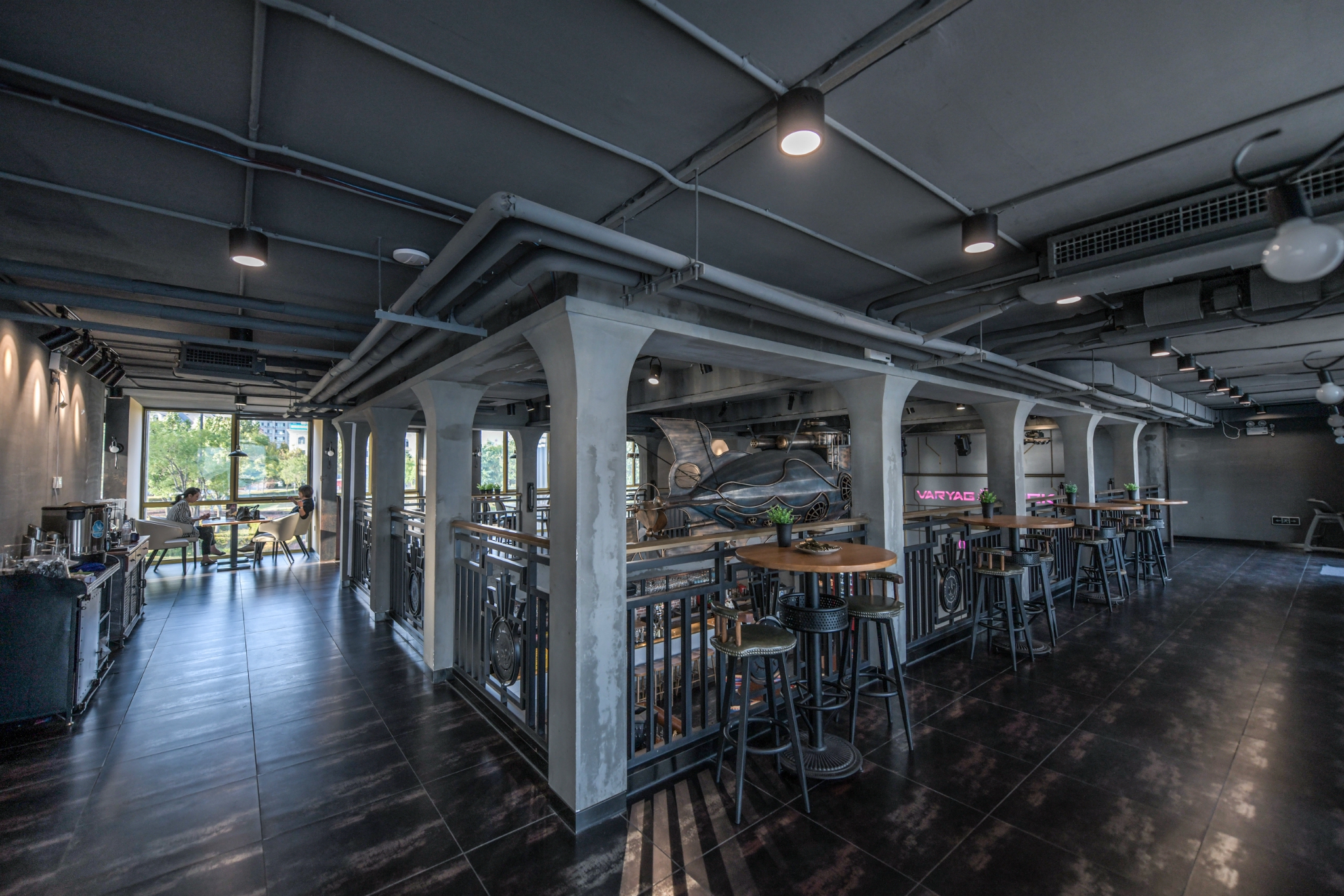 说到餐厅的内部环境还是非常不错的,是不是觉得这种餐厅充满着工业风的气息呢?经过了解才知道这是一家用22个废弃集装箱组建而来的餐厅,22个集装箱能建设三层楼高的餐厅还是很有趣的。可以说这是用集装箱改造而来的工艺品,非常震撼!
