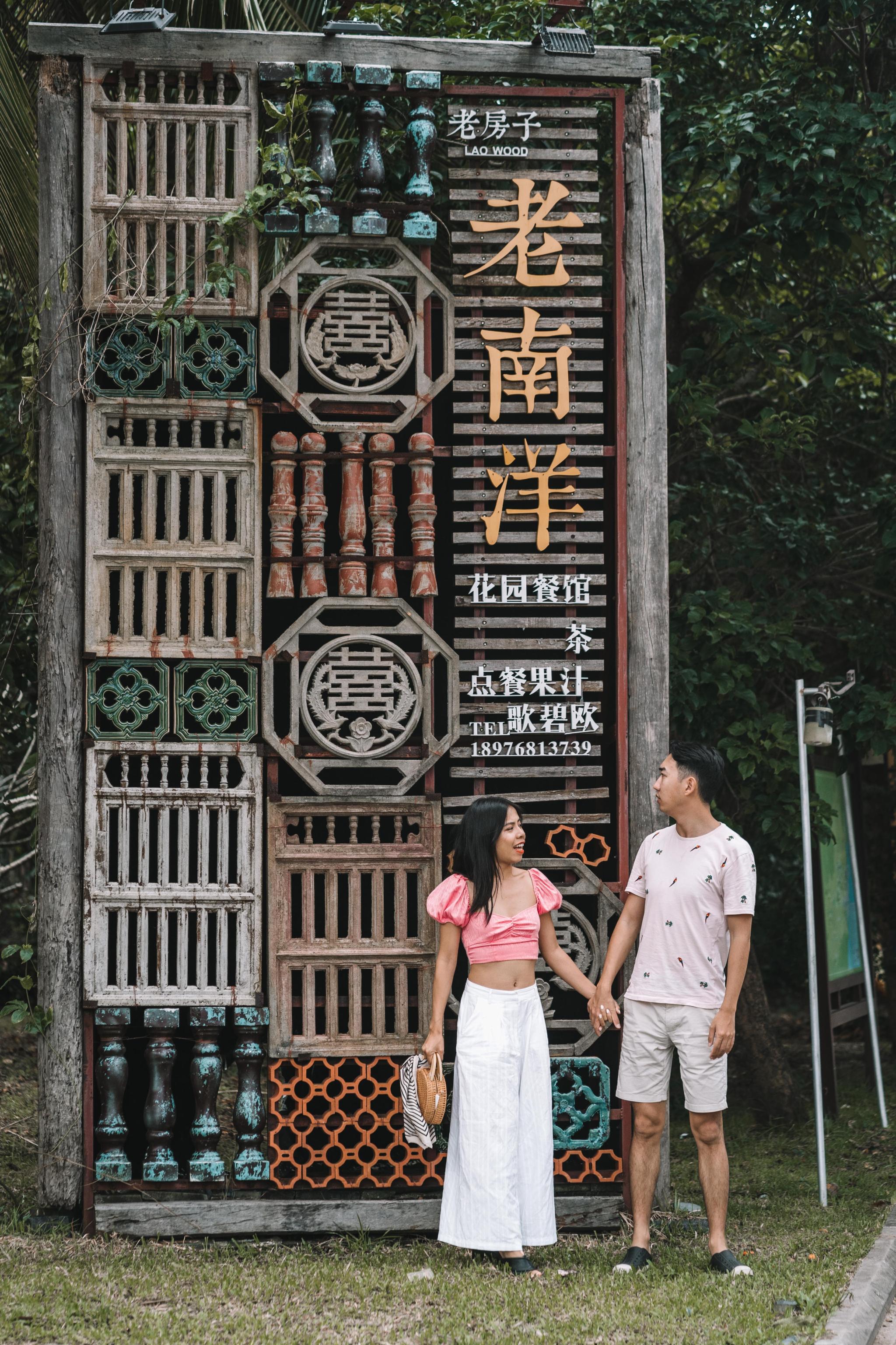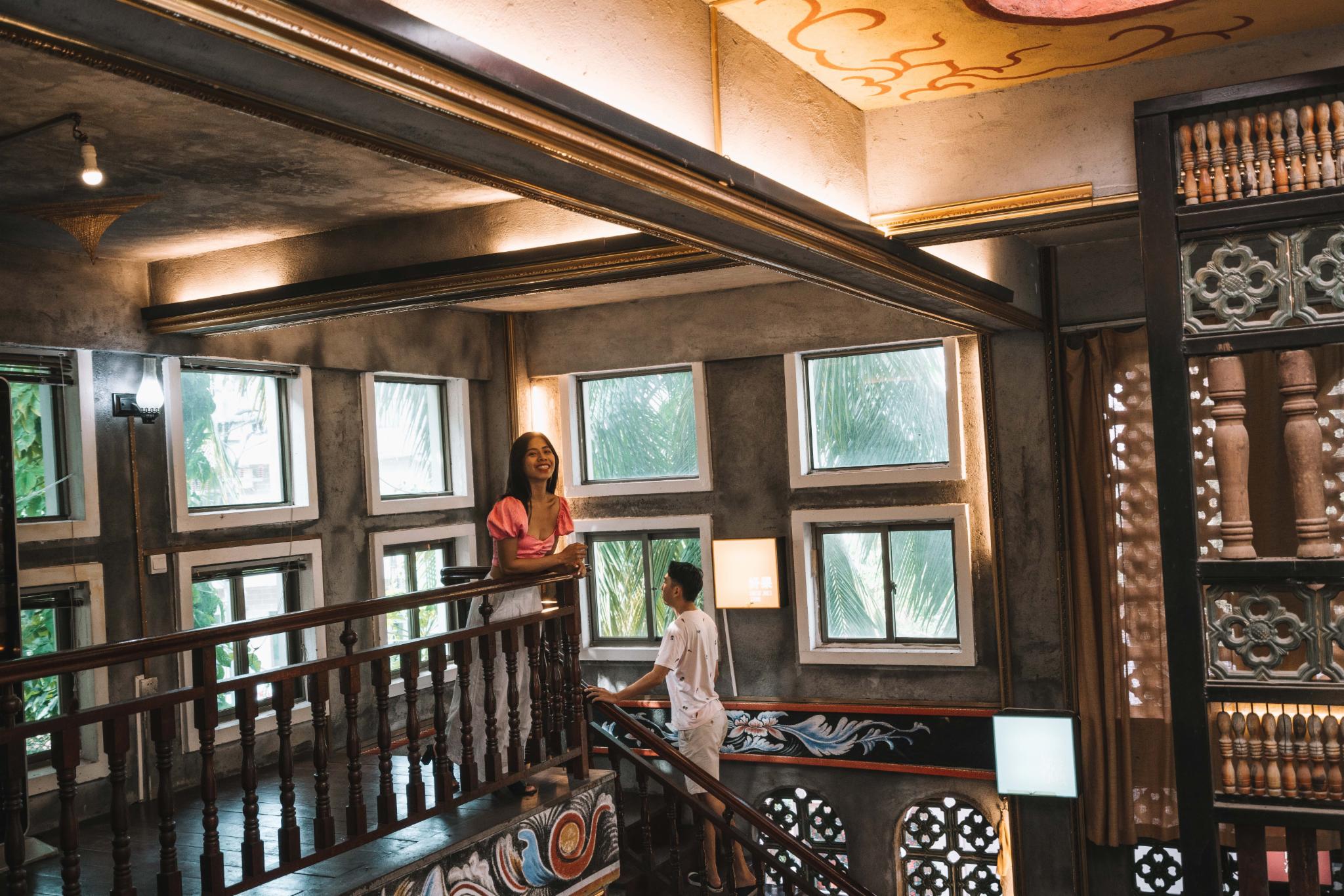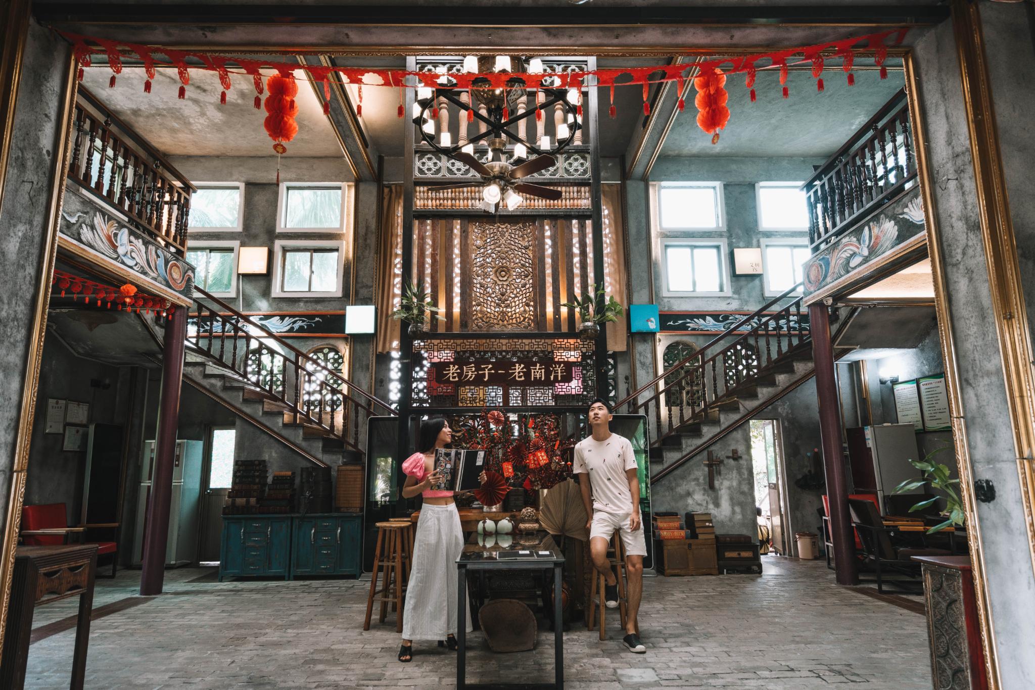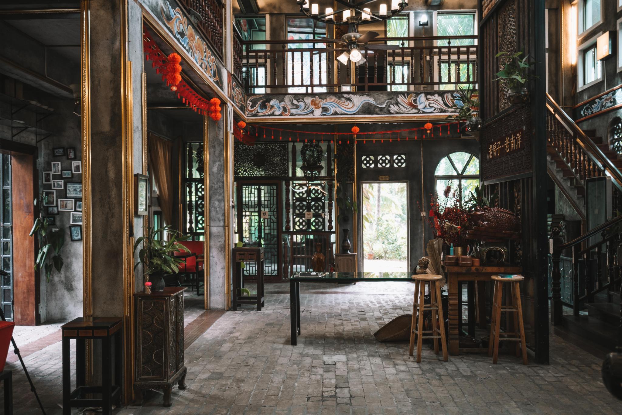 它的店铺是由海南本地复古老房子建筑改装而成的,古香各色,左右对称,特别有南洋建筑设计风格,每个角落都展现出浓浓的文化气息