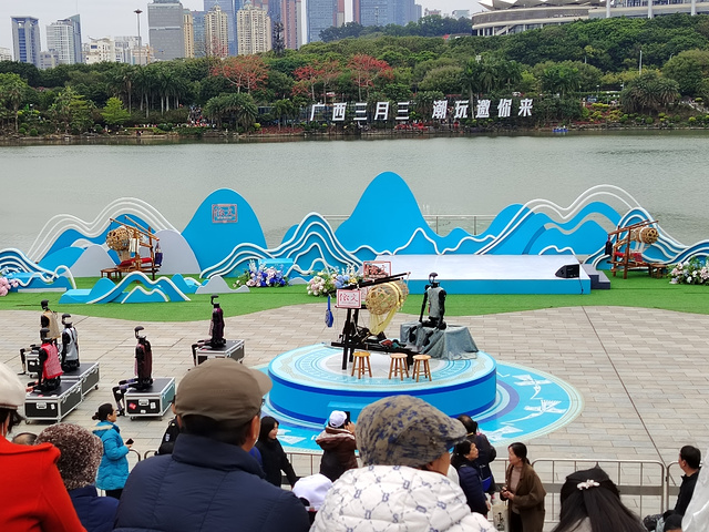 人都有从众心理,三月三这天,我一进南宁民歌湖国际音乐小镇,看到好多人挤在一起,挤进去一看,原来下面有个舞台,但是并没有演出啊,大家围在为了干嘛呢,有栏杆拦着,下不去的啊。