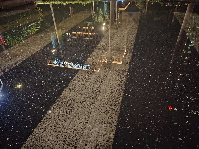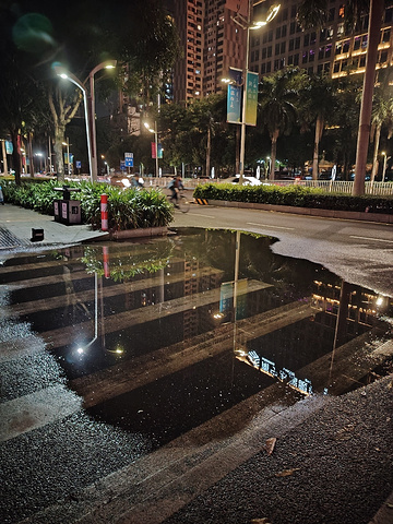 今天的大风下雨,给南宁道路上的树洗了个澡,什么黄叶残枝都落了下来,民族大道新华书店前面的积水很大一摊,拍倒影挺好看的呢。