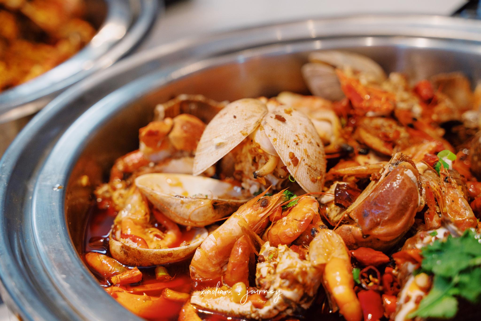 可以涮火锅的菜品非常多,各种螃蟹、虾、螺、鱼等等,当然除了这些特色海鲜以外,大家平时吃的蔬菜、菌类、羊肉牛肉的选择也非常多。