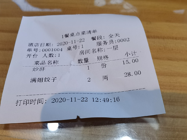 在附近逛完 准备找地方吃饭 搜的比较近的人气高的就是这里了 到的时候十二点多 需要等位 我一个人 就问前台 看看能不能拼个桌 于是没有等位 直接和一个大爷拼桌啦[胜利] 饺子二两起点 对单人又想多尝的小伙伴有点不友善 只点了一份招牌的满姐饺子一份儿炒肝 炒肝上来的很快 还挺稠 有些咸 还是搭配的包子吃合适 饺子 个很大 里面有一整个虾仁 搭配的韭菜 味道还不错 下次想多几个人来 尝尝小龙虾馅的[调皮]