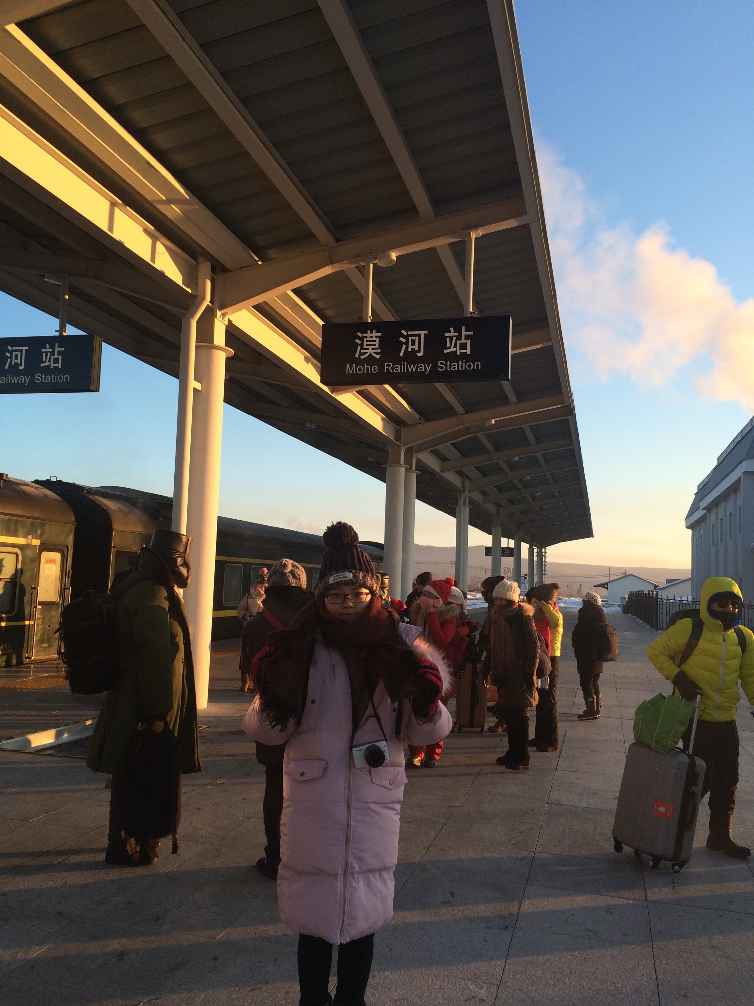 坐了一晚上的火车到达漠河站~。旅行的意义驴友们说是相聚相离,走时拥抱期待世界下一个小角落见