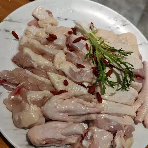 嗲嗲的椰子鸡 海南特色椰子鸡。吃了几家觉得嗲嗲的鸡肉是最鲜嫩的,也有在家里尝试做过,毕竟食材都是非常简单的,但是市场上的鸡肉没有他家的好吃。店员说他家的鸡场养鸡是养足150天,并且所有鸡只吃椰肉。怪不得连鸡皮都觉得挺Q弹的。汤底是三个青椰的椰子水+一点条形椰肉+几颗马蹄+ 一点点枸杞。 如果怕汤太甜店员会给你加一瓶依云矿泉水。椰子鸡的原则是到时间先吃鸡,免得鸡肉会老,后喝汤,喝完汤再去煮其它的。 建议人多的话点两大份鸡肉,是非常满足的。除了鸡肉以外,我觉得竹荪,马鲛鱼滑是必点。虾滑家家一个味儿,可以略过。