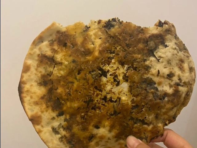 辣五花肉烧饼昨天吃了甜的今天尝试辣的,依旧很好吃。量大肉多,放了醋漂着葱芹菜的汤很开胃