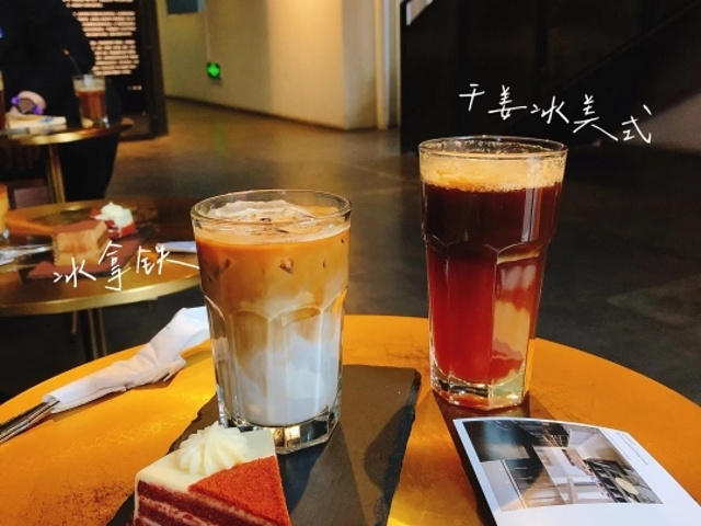 是朋友想打卡了很久的咖啡厅,就在地坛对面的小街里,入口有点隐蔽。因为当天三层有活动不开放,一二层都爆满,差点就找不到位置准备走了.... 点了冰拿铁、干姜冰美式和红丝绒乳酪蛋糕;冰拿铁口感很丝滑; 干姜冰美式真的和红糖姜水很像,有浓浓的姜味,看起来应该是现榨的,但配起咖啡来不会很奇怪,姜的辣味也不会过于冲,喜欢吃姜的人应该会喜欢; 红丝绒乳酪蛋糕有浓浓的乳酪味,甜度适中,不会很腻,适合配咖啡一起吃~ 服务也挺不错的,确实如果没有赶上周末来,人少一点,体验感会更好~