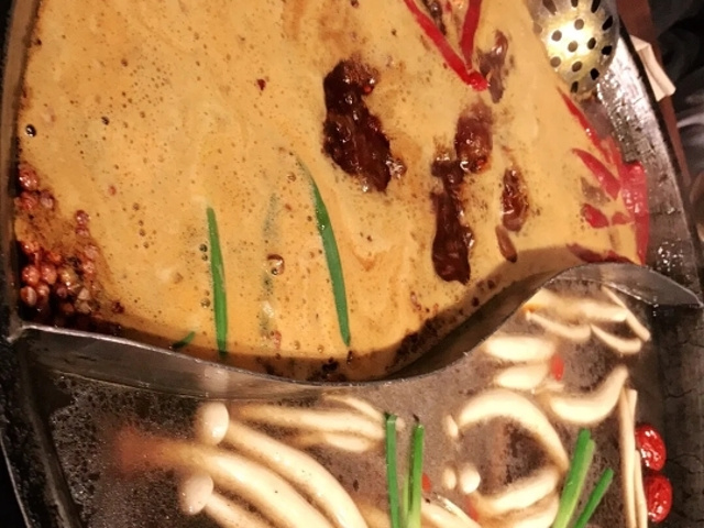 店的位置再一个斜坡坡上,等待的人都坐在楼梯上,有垫子垫着就还好,就是重庆的晚上,风还是有点大的。锅底味道还是不错的,点的番茄鸳鸯微辣,番茄有点酸,微辣一开始淡淡的,越煮越辣越有味儿。菜品不错,点的二人套餐,还算划算,三个人再加点菜,绰绰有余,非常的棒。地点离洪崖洞,解放碑还挺近,走路十几分钟就到了。