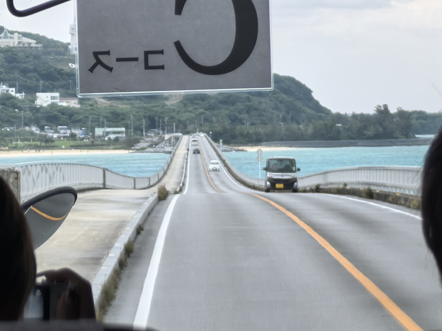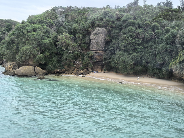 古宇利岛位于冲绳北部,临着东海,古宇利大桥就是链接前往小岛的唯一陆路通道。 因为是参加北部一日游团,所以在这个美丽的小岛上,只停留了半小时,哎!有些遗憾。 大桥本身没什么特别,但行驶在上面,俯瞰碧蓝碧蓝的海水,那种感觉就非常好了。导游说,经常有很多海龟🐢在这里出没,幸运的话就能看到,所以大家伙都抻着脖子在海里面找😉,哈哈哈😂 如果是自驾游的话,非常建议在这个小岛上停留半天,沿着小岛的公路环岛游一下。 总之,这里是去古利岛必经之路啦。