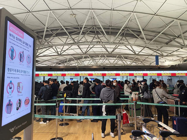 仁川机场离境务必得早点去机场,人真的是太多了,全都是人,要提早去安检去排队,不过其实早点去也有好处,这边可以逛的地方也是很多的呢,很适合大家提前来逛逛,而且也得提前去退税什么的,拿货也得提前预留时间,总之很不错。