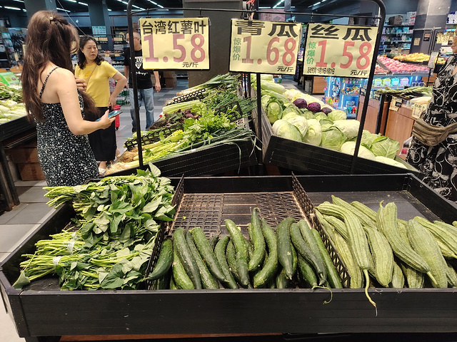 南宁超市里的菜价也太便宜了。 新鲜蔬菜,健康生活。昨晚7点半,我到南宁优之道超市逛,看到茄瓜0.99元一斤,韭菜1.28元一斤,生菜、红薯叶、丝瓜都是每斤1.58元,而且品相不错,品质保证哦,超市里卖这种价格,真是太便宜了。
