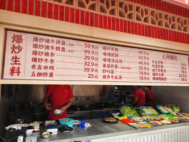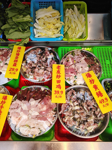 在南宁亭子码头,有家粉之都旗舰店,除了有生料老友粉、桂林米粉、柳州螺蛳粉,还有爆炒生料,这里的生料品种好多,除了通常的牛杂、猪杂,还有田鸡、黄鳝、肥肠等等,我打包了一份牛杂,还配了米饭,爽爽的。