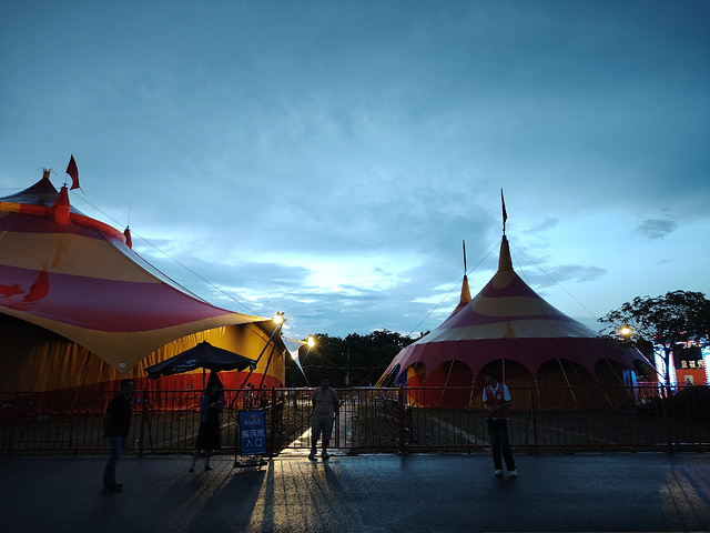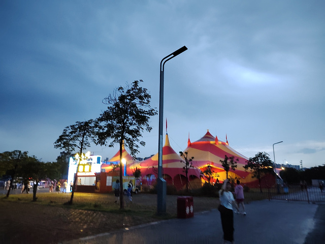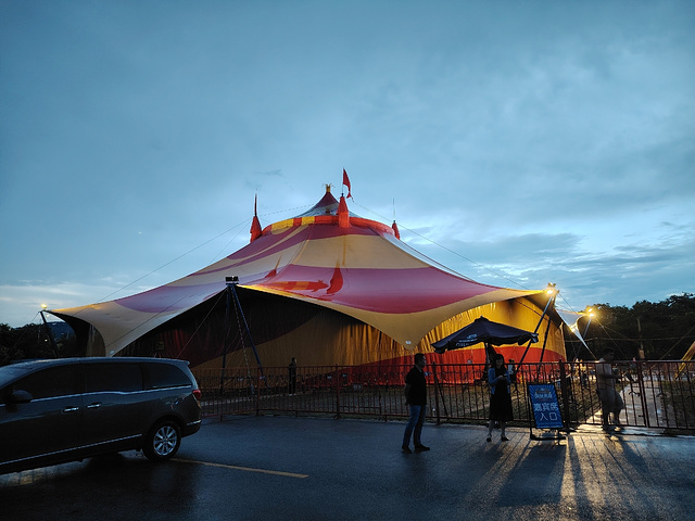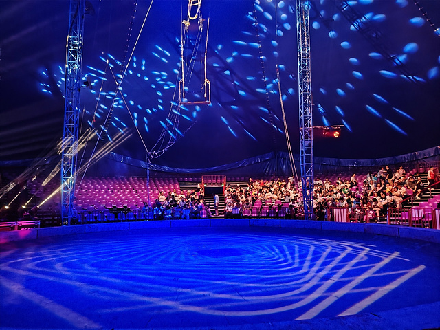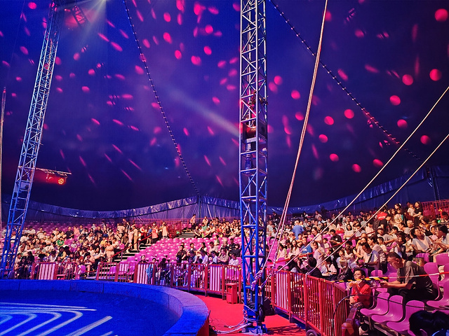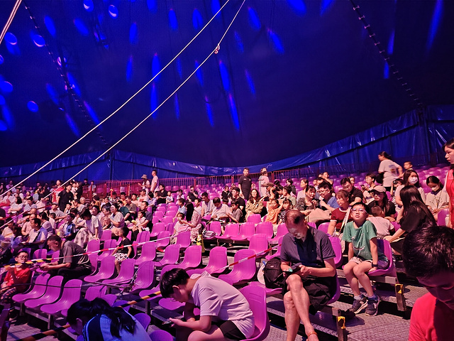 很多年没看过马戏团的演出了,今晚到南宁方特门口的大蒙古包里看了场大马戏《海丝传奇》。 进去看到场地、灯光都不错,人很多。
