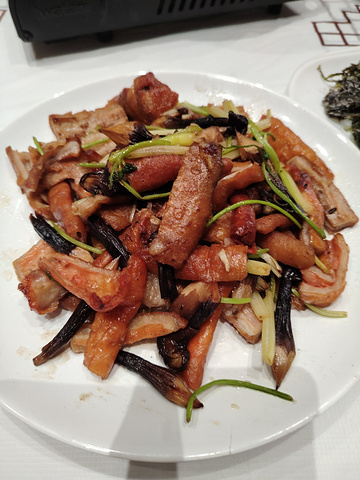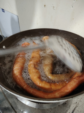 实况拍摄:炸七寸陪黑松露酒,绝了。 在南宁五一路荣丰餐饮管理公司吃饭,做卤味特别厉害的高级烧腊师许少锋现场炸七寸,炸过后用菌菇、芹菜炒一下,这大肠弹口有嚼劲,配上用黑松露泡的酒,美味得不得了。