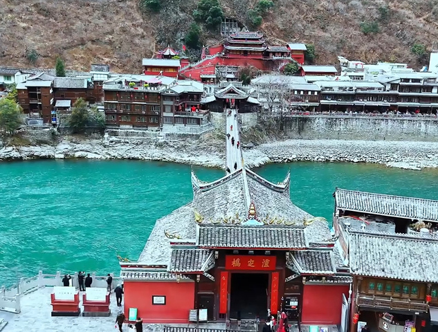 泸定桥景区介绍 泸定桥景区位于四川省甘孜藏族自治州泸定县,距成都市280公里,距康定市48公里。景区以泸定桥为核心,范围界定为:南自城南大桥、客运中心、红军飞夺泸定桥纪念馆;北至勇士路北停车场(开湘路与延安路交汇点);西沿纪念馆、勇士路(含观音阁)、G318以东;东自客运中心,沿成武路、泸定桥广场、止开湘路终点。 泸定桥横跨大渡河,为铁索悬桥,由13根铁链组成。历史记载桥始建于清康熙四十四年(1705年),次年竣工。因是康熙帝御批建造,民间称“皇桥”。康熙帝御书“泸定桥”三字匾额挂于西桥头,横批“一统山河”,东桥头至今立有康熙《御制泸定桥》碑。270多年来,它是四川内地通往康藏高原的重要通道。1935年5月,红军长征至此,22位勇士组成的突击队冒枪林弹雨,缘铁索匍匐前进,消灭守敌,红军遂过大渡河。 泸定桥长101.67米,宽2.7米,由桥身、桥台、桥亭三部分组成;13根铁链固定在两岸桥台落井里,9根作底链,4根分两侧作扶手,共有12164个铁环相扣,由862至997个熟铁手工打造而成,全桥铁件重40余吨;桥台为固定地龙桩和卧龙桩为基础;桥亭属清式古建筑。门票信息成人票10元旅游攻略游玩路线:观景台→泸定桥→红军飞夺泸定桥纪念馆→红军飞夺泸定桥纪念碑 。 最佳季节:四季都行 周边美食: 石板鱼、藏式火锅、藏式酥油茶、泸定粑、泸定豆花、泸定烧烤、泸定酸奶 交通路线 成都方向:成南高速(G42)→18KM转成巴高速(S2)→178KM进广南高速(G75),里程约271.3公里,耗时约3小时11分 。 广元方向: 利州东路三段→2.6公里右转进国道G212→15KM朝广元/G75稍右转,匝道310米后进广巴高速(S20)→20KM朝南充/G75稍右转上匝道,1.5公里后进兰海高速(G75),里程约144.8公里,耗时约2小时 。 泸州市方向: 厦蓉高速→过小坝子村140米后转隆纳高速(G76)→48.1公里朝内江/G76/G85稍左转进厦蓉高速→840米进成渝高速(G85)→朝遂宁方向进内遂高速(S11)、成渝环线高速(G93)、南广高速(G42)→31.9公里后转成南高速(G42)、兰海高速(G75),里程约396.9公里,耗时约4小时30分 。 高速优先路线: 成渝高速→绕城高速→成雅高速→雅康高速→318国道,直达泸定县城,沿途雅安段可休整拍照,天全服务区是网红点(有318国道起点标志 ),过二郎山隧道(“川藏第一隧”,灯光震撼 ),还能在大渡河观景台感受红色历史 。