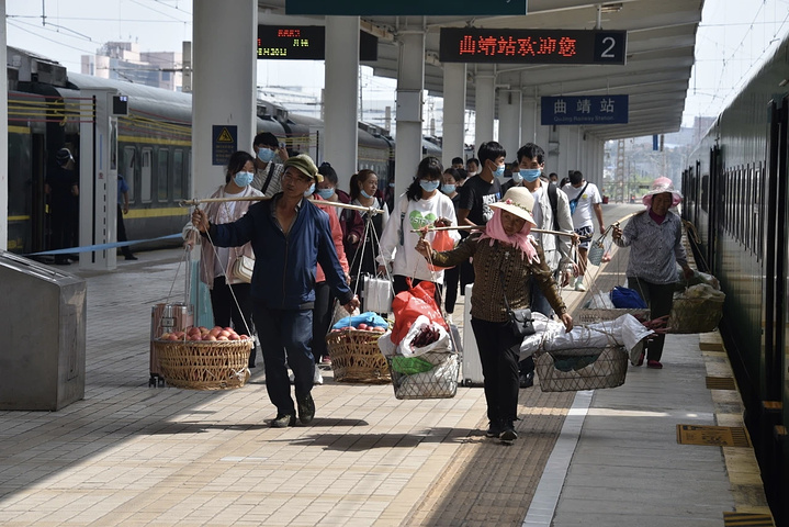 慢火车时光 “云贵高原的记忆” 人们常说:长红果短红果,原来昆明到红果有两趟车,一长一短,今天我就要坐这趟短红果5652次。 这趟车行驶在云贵高原,云贵高原的范围广泛,涵盖着云南东部、贵州全省、广西西北部和四川、湖北、湖南等省边境。 5652次有9节车厢,一节行李车、一节发电车,三节硬座车,四节卧代坐,行李车主要是为沿线铁路职工运送日常生活用品。半夜昆明下了一场雨,天气也凉了下来,与北京闷热的天气相比,昆明是一个值得养生避暑度假的好地方。 7点钟5652早已在站台等候,列车停5站台, 7:15旅客陆续上了车,昆明始发虽然没有想象的客流,但挖菌的人不少。一打听原来是一些退休的老人,每天他们坐5652到小雨街去挖菌,既爬山锻炼了身体又挖了菌。在这趟车上挖菌的人不下20人,车一开几个挖菌的伙伴就打起双升。 5号车卧代座,站台上背着大包的妇女上了车就躺在铺上,我们正好在同一个格里,也算同行人吧。她躺下睡着了,为了不打搅她,我就坐在过道的边坐上,大包几乎顶着中铺,弱小的身体,细小的双腿和大包不成比例。我在想为什么背着这么大的包?这包里面装着什么?这是一个怎么样的人?她要去哪里?背篓的沉重是无法想象的,两只脚脖子上还有几个蚊虫叮咬的痕迹。 妇女醒了,揉了揉眼睛,喝了口水,她告诉我她姓杨,在昆明主要是收废品,她的老家在小新街(该),包中全是她收来可以用的电气。杨大姐说:她在小新街有两个儿子一个女儿,儿子在外面打工,女儿已经出嫁,两个孙子独自在家没有人看着她不放心,等开学了她再回昆明。杨大姐说老伴已经去世30多年了。 赵车长今年59岁了,明年10月就要退休了,原来他走大理丽江,后来改走5652小慢车。 9:01列车到了照福铺,上车全是提筐背篓挑扁担的,扁担挑的是栗子和菌,上了车他(她)们就把农产品整齐地码放在列车“农产品存放处”。这是列车精心准备的,由于卖农产品的人非常多,大筐背篓经常占据车内过道,旅客通行不能受影响。 为了卖个好价钱,菜农们上了车就整理起农产品。程大姐今天带的全是菌,列车洗面间的三个洗手盆成为美容菌的地方,程大姐一直在忙,从洗漱间美容完,又把农产品进行分拣,菌已成为她生命的一部分。 马龙站9:52分,新的“大军”涌上车,这是果农大军,苹果、梨等是当地的特产。邹大姐带来60多公斤梨,每天能卖了300多元。邹大姐的火把梨和其他品种不一样,中午1点她就能卖完。而老蒋带来80多公斤苹果,当地都是按照公斤来计算售卖农产品,不熟悉的还有点懵。老蒋家有10亩地一年能打10吨果,一年下来能挣10多万元。老蒋原来卖菜,现在改卖水果,因为人们生活水平提高了,水果更好卖。 车上的一老一小分别在车的两头,老人穿着紫色外罩,坐在过道边座,不时地看着窗外,小孙子顽皮的在车内蹦蹦跳跳,惹得人有点不安静。 曲靖还有一个段时间,菜农们在相互聊天,列车广播曲靖就要到了准备下车,大军们忙了起来,为下车前做好准备。 11:01分曲靖站,大军开始下车,三个小站上车的大军汇成洪流,奔向出站口。 曲靖开车,列车恢复往日的平静,空荡的车内只剩几个人,云贵高原的绿皮慢火车,在连绵弯曲的云岭大地慢慢的走着,平关是云贵两省的交界处,过了平关慢火车将进入贵州省。 现在高铁、公路、私家车和公路大巴车多了,随着人们生活提高,慢火车已不再是快节奏人的首选,但那种乡愁、那种留恋不能让人割舍,慢火车永远在他们心中,慢火车的往日时光成为他(她)的记忆。