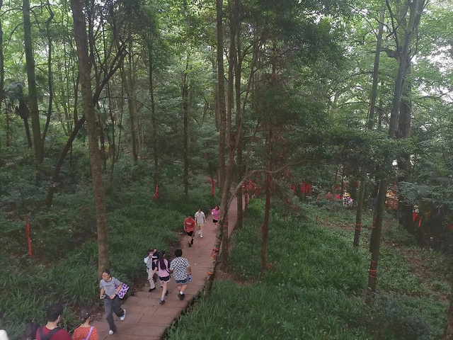 峨眉山路似乎很紧凑,没有哪一块是多余的。在一个道馆里,我顺着台阶滑下去,差点摔倒,但幸运的是我刚好坐在了台阶上,没有受伤也不痛,反而坐得很舒服。登顶老君阁后,我感到有些迷茫,不知道接下来该做什么,于是坐在背后的台阶上发呆。望下去,成都方向一片平原尽收眼底。屋檐下阴凉处吹过的风很凉快,我不知道坐了多久,拍了拍屁股上的灰开始下山。