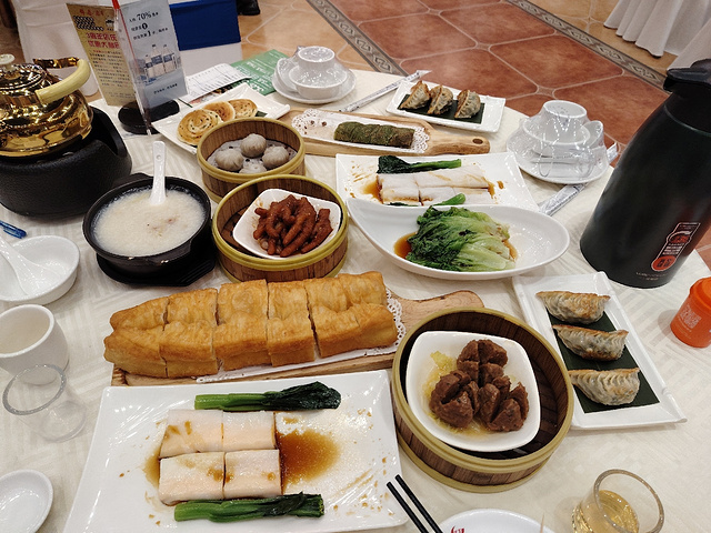 在两广,喝早茶去一个很惬意的时间,各式各样的茶点,一壶普洱茶,就让人食欲大增。在南宁锦春府酒家(锦春路店)还有免费的油茶喝,只是来晚了就没什么配料了。