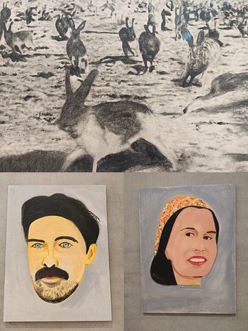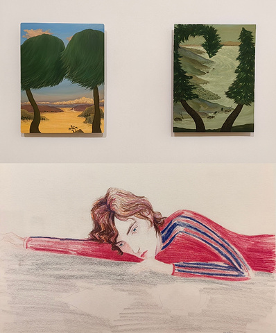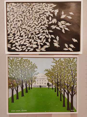 跨越代际与经验的可能性,且珍视绘画的多元性,解锁艺术空间的别样体验。踏上灵感的征途,从痕迹狂想出生长出脉络,让世界住进我们的眼睛,永远别丧失观看的本能。 米利亚姆的画经常被光晕包裹,散发着浓烈的情绪张力。修剪整齐的行道树,如深圳这座移民城市,寻求归属感又渴望着自由。 最惊喜的当然是劳拉.欧文斯,她将梵高与温妮弗雷德·豪的作品,转化为暗藏机关的手工书,邀请观众介入装置,触摸、翻阅、唤醒潜藏其中的视觉与历史叙事。可惜一次只能十个人进入,后期需要工作人员手动翻页。