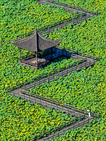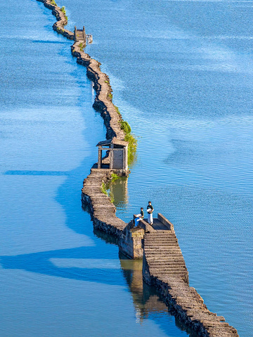 这次来到绍兴,第一站直奔柯桥区的古纤道。走在石板铺成的蜿蜒步道上,脚下是鉴湖清澈的流水,远处有两人正站在台阶平台边拍照📸。石道间的青苔和凉亭显得格外有岁月感,一路走去,仿佛能想象昔日纤夫拉船前行的景象。 随后乘船游览水乡河道🛶,深蓝色的水面上几艘小船缓缓前行。拱桥连接两岸,蓝白相间的老建筑沿河排列,山崖与绿树构成宁静的背景,超像一幅活着的山水画! 第三站是荷塘栈道。木质步道在荷叶丛中曲折延伸,白荷点缀其间。凉亭里稍作休息,正好看到一位游人漫步经过,恬静得像走进了田园诗里🪷。 最后逛到了古镇区的石拱桥。红灯笼挂满白墙灰瓦的屋檐,桥上行人的白衣在水面倒影中格外醒目。这里超适合慢慢走、细细拍,每一步都是景。 📌 实用贴士: - 古纤道位于绍兴柯桥区,免费开放,建议清晨或傍晚前往,光线柔和人又少。 - 荷塘与古桥区域多在镜湖及周边古镇,可乘公交或打车抵达,适合半日漫步。 - 整体路线人文与自然结合,穿舒服的鞋子,记得带防晒和相机哦~📷