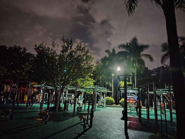 运动打卡:夜晚到南宁金花茶公园运动中心锻炼,人少一些,也安静很多。
