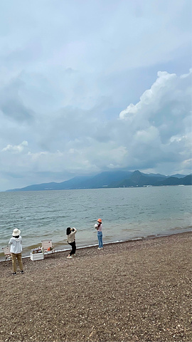 #红沙滩的交通是否方便? 从我们入住的喆啡酒店步行到红沙滩,大约十几分钟路程,好个方便呀。 抚仙湖红沙滩,简直是大自然的宝藏馈赠!红沙细腻如丝,在阳光下泛着迷人的色泽,与清澈湛蓝的湖水相互映衬,美如画卷。这里还是绝佳的日落观赏点,夕阳西下时,氛围感拉满。免费又人少,非常适合拍照打卡、亲子游玩,是值得一去的小众秘境。