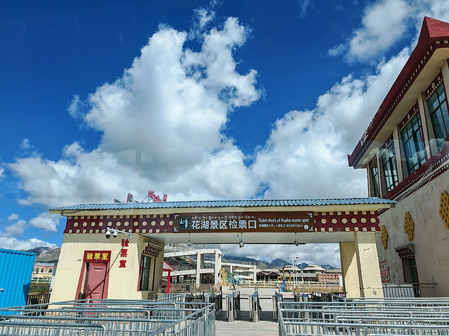 这里的自然景观:每年5月至7月是花湖野花盛开的季节,狼毒花、格桑花、马先蒿等五彩斑斓的花朵铺满湖岸。花湖的中心地带还有“花湖之眼”景观,一片碧蓝湖水包围着椭圆形水草,形似巨大眼睛,上方柳叶形水草如眉毛,水草间白色小花似泪光。