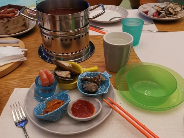 就在熊猫酒店的一层,有天鹅小兔子之类的小动物,菜品种类比较多,味道也不错。