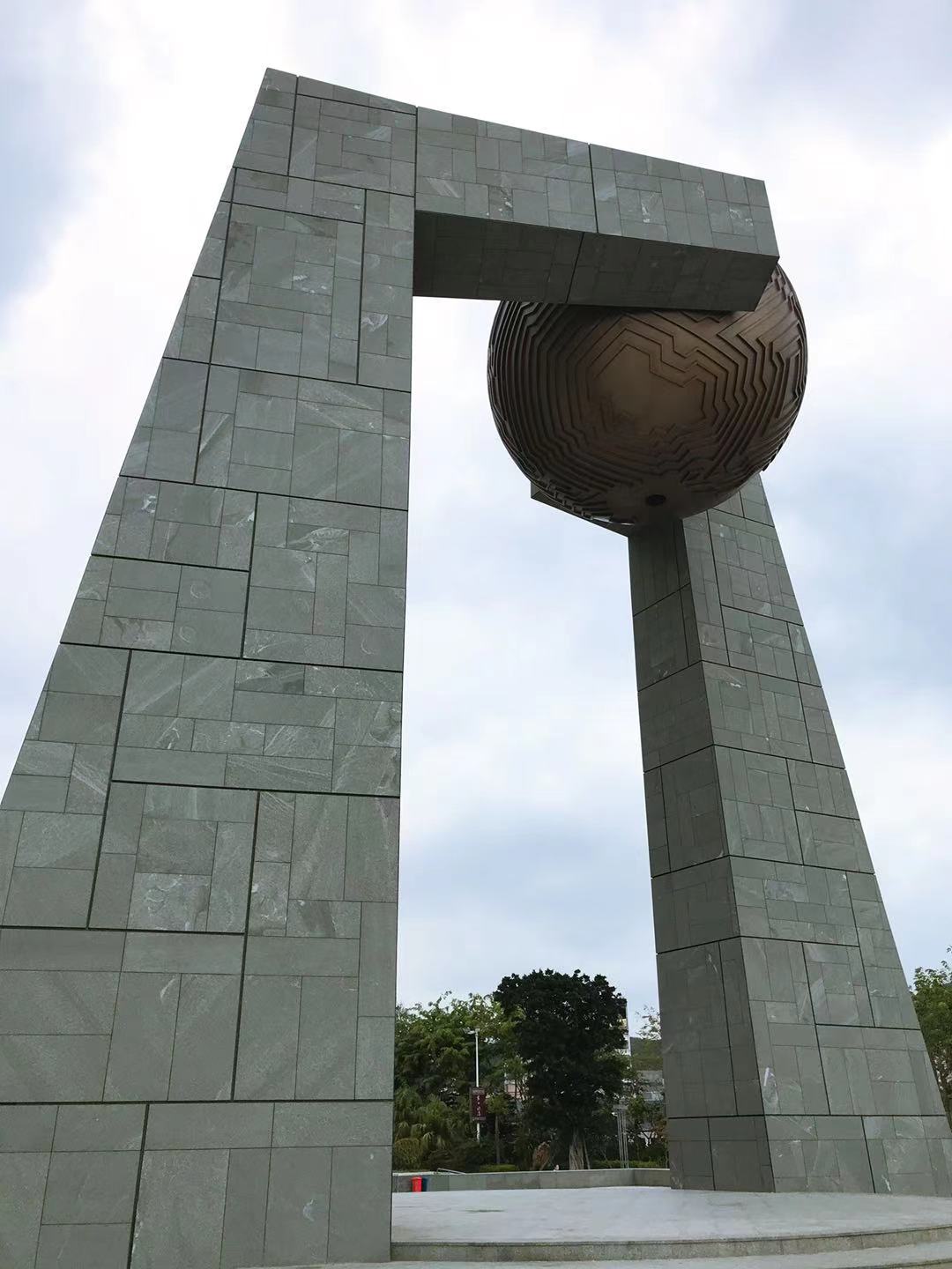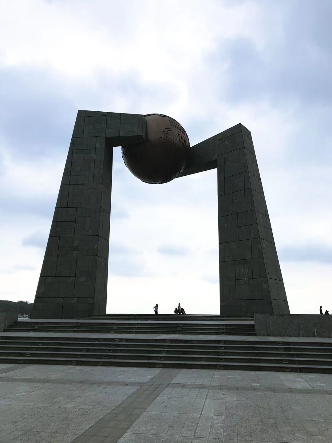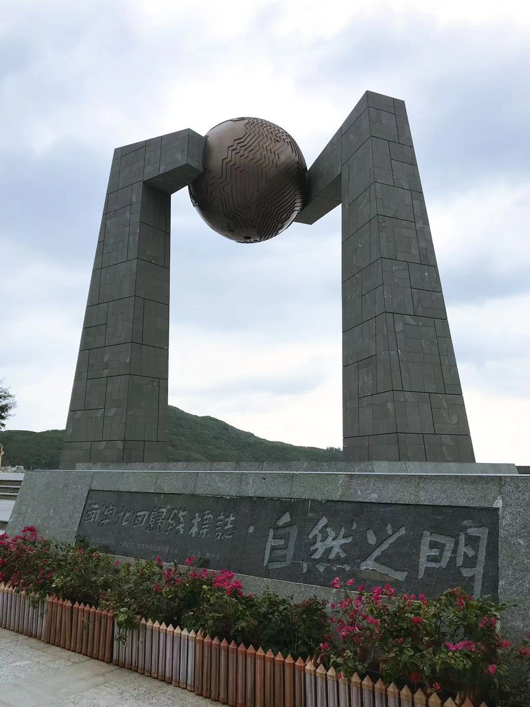 青澳湾,位于南澳岛的最东端,湾口朝东南,湾腹很深,湾弧达近3公里,登高俯视,就象一弯新月,难怪这里多以月亮命名的酒店和雕塑。南澳北回归线标志塔"自然之门"也在青澳湾北回归线广场,是迄今我国建成的第11座北回归线标志塔。