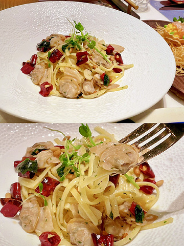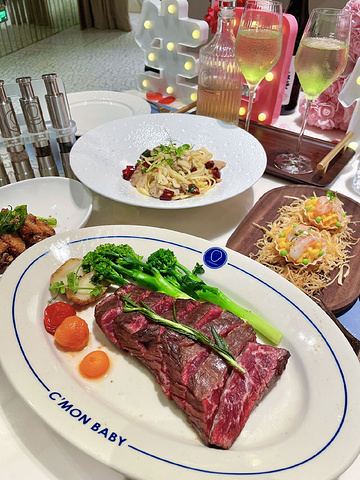 环境没话说,简直是日常小聚的完美选择!一边享受美食,一边欣赏珠江美景,超惬意。 从进门开始,店员就提供超贴心的服务,还会主动帮忙拍照,服务真的没话说,店员都超nice,会主动询问需求。菜品摆盘都很精致,随便拍拍都超好看。氛围感直接拉满~ 推荐几道必点菜: 🍤北极甜虾芒果塔超级惊艳,甜虾的鲜美和芒果的清甜完美融合,酸酸甜甜特别开胃。 🍝鲜蚬肉松子罗勒蒜香辣扁意粉也超赞,蚬肉新鲜饱满,松子和罗勒的香气丰富层次,扁意面煮得刚刚好。 🥩澳洲安格斯冰鲜M3+牛扒,肉质香浓内里粉嫩,切开时肉汁四溢。建议选五分熟,能吃到最完美的口感。还贴心配上六款不同盐,盐架很漂亮高档,搭配黑松露盐或喜马拉雅玫瑰盐,味道更加丰富! 🥂樱花龙井冷泡茶配青提冰,清爽解腻,樱花香和龙井茶香交织,清爽解腻。 🎂在这里过生日也很合适!提前预约可以免费布置,还会准备惊喜。一边享受美食,一边欣赏珠江美景,超浪漫。餐厅营业到凌晨1点,这里的夜景特别美。