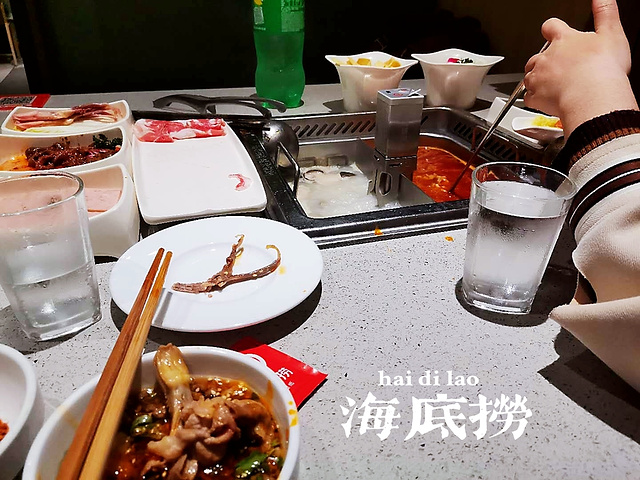 环境:环境还不错,对于吃饭来说,环境已经是很好了!内部收拾和打扰也很干净。晚上晚点去的话一般不用排队,太早的话可能会排一会。我们2个人8点去排了大概15分钟的样子。 服务:有人说海底捞吃的就是服务,我也是第一次去吃,就是想见识一下海底捞的服务是怎么的。结果从我进门门服务到离开。等待吃饭的时候会有很多小零食和洗脸帕,去餐厅的一路上都有人带你,一直给你鞠躬堂。吃饭也是全程服务,什么都不要你做,就差给你夹菜了。虽然说服务真的真的很好,但是我真的很不习惯啊,吃饭的时候一直有人守着你,做什么都不自在,想拍照都不好拍。能不能给人一点自由的空间?聊天都不敢说大声了。我个人觉得海底捞最大的弊端就是服务过头。 价格:一个字概括就是贵。我们两个人吃饱还很撑的情况下总共花了400元,人均200。平均下来,不管多少人,差不多费用就是在160-200之间。其实在现在的消费水平看来也还好,因为你随便出去吃一点一个人估计都要上百。 总共推荐指数四颗星,来的小伙伴品尝一下也未尝不可,如果没有吃过海底捞,哪怕只是为了服务,都必须来一来。