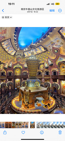 穿过层层叠叠的竹林,牛首山佛顶宫如琉璃宝盒嵌在山间。步入地宫,千佛殿的灯光璀璨庄严,释迦牟尼佛顶骨舍利供奉于莲花座上,周遭的梵音与檀香交织,让人不自觉放慢脚步,在这份静谧中感受心灵的震撼与安宁。
