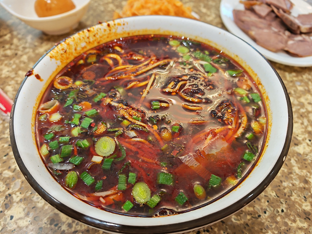 磨沟沿牛肉通常指的是兰州磨沟沿老字号牛肉面店的牛肉。这家店是兰州牛肉拉面“四大天王”之一,1999年始于七里河区文化宫的一家小店,现已有10余家直营店,还开到了加拿大。店内的酱牛肉9元/两,腱子肉11元/两,肉质软烂入味,完全不带一丝腥膻味,肥瘦相间的部分吃起来口感脆韧,咀嚼感强,香味十足。