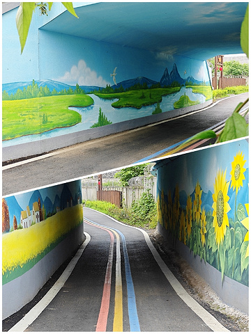 千佛稻田公园,隐匿于城市的喧嚣之外,漫步在稻田小径,享受田园风光带来的宁静和悠闲。 微风过处,绿色的稻浪翻涌起舞,适合初夏时节打卡拍照,有种宫崎骏夏天的感觉。 沿着主道走一走,还有各种墙体彩绘。