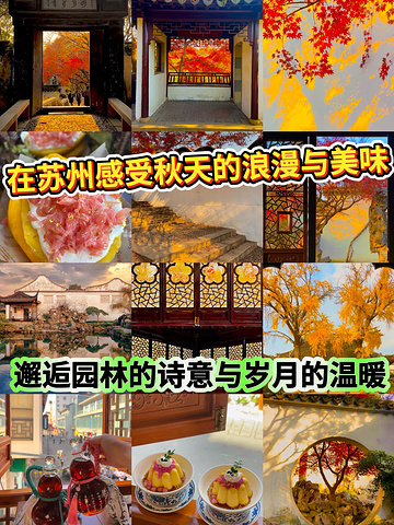苏州的秋天,就像一幅生动的画卷,绽放出绚丽的色彩✨。这里的园林在秋冬季节仿佛有了灵动的生命,特别是在下午,阳光透过蓝天洒进园中,斑斓的光影交织,仿佛为每一处留下一笔诗意的美学🖌️。 当阳光洒在墙壁上,枫叶的影子轻轻跃动,宛若星星般璀璨⭐。在这样的时光里,驻足园内,感受每一秒钟的变化,真的让人不舍得离开。 ✨来看看这些美丽的打卡地吧: 📸[一] 艺圃-小院的静谧美 📸[二] 定慧寺-万年银杏的金黄 📸[三] 留园-红枫窗外的迷人魅影 📸[四] 虎丘-冷香阁的清幽雅致 📸[五] 拙政园-宜两亭中的浪漫 📸[六] 古典舞的优雅身影 📸[七] 糯叽叽-温暖人心的苏式糖水 📸[八] 环秀山庄-像星星般的枫叶 📸[九] 虎丘-巢云廊的诗意廊道 📸[十] 观前街景的繁华与历史 📸[十一] 大闸蟹-舌尖上的鲜美 📸[十二] 网师园-落日的余晖迷人 📸[十三] 固体杨枝甘露的清甜 📸[十四] 苏式糕点的传统美味 📸[十五] 虎丘-明月前的诗情画意 📸[十六] 苏州大字的文化印记 📸[十七] 舌尖上的江南风味 📸[十八] 苏园火锅-与评弹的绝妙结合 和我的好闺蜜一起追逐苏州的秋日,享受一整天的美好💖。最后选择了一家满是园林元素的苏式火锅🍲,不仅丰盛美味,更是让我们沉浸在这份温暖之中。不论是穿着汉服还是旗袍,恰到好处的搭配让我们在享受美食的同时,还能拍出精美的照片📷,留下难忘的回忆! 体验苏州秋天的每一份美好,只需用心感受,便能找到这座城市独特的韵味与温暖。✨