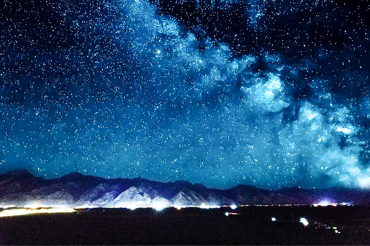 草原的夜把星光揉碎,洒在无垠绿毯上。抬头是银河倾泻的璀璨,低头是风过草尖的私语,内蒙古的星空,是宇宙写给大地最浪漫的信笺。当暮色漫过蒙古包的顶,星空便登场了。亿万颗星辰在天幕闪烁,与远处的篝火遥相呼应,这一刻,时间变慢,唯有星光与自由,在草原上无限蔓延。