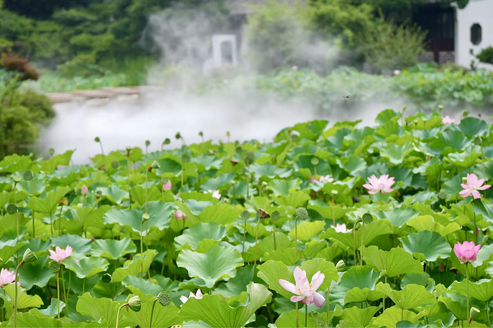 7月里炎热的天气也没阻挡住我们去南园观荷的脚步。夏日在太仓南园观荷,像喝了一口溫润清甜的莲子茶,入口是荷香,回甘全是江南旧时光的温柔味道。清晨去最好。薄雾还没散透,南园的白墙黛瓦浸在水汽里,像刚被洗过的宣纸。南园的荷,不是那种震撼的大景,是小而美的江南味儿。每一缕香都藏着旧时光的温柔,每一片叶都映着生活的静好,像一杯温温的茶,越品越有味道。
