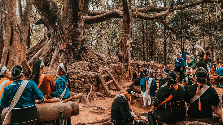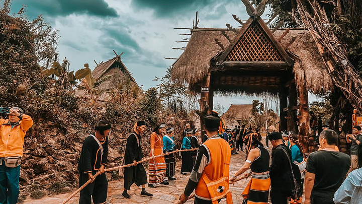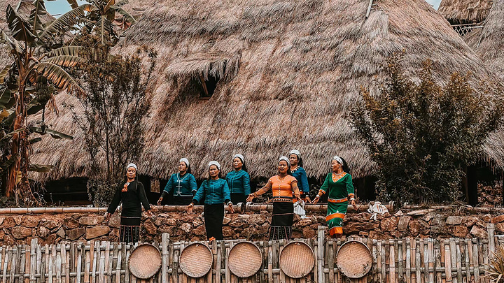 不必远赴异域,翁丁就能给你最纯粹的原始部落体验。清晨在寨门接过佤族姑娘的“娘布洛”祝福,跟着拉木鼓的队伍感受千人同心的壮阔;午后穿一身黑底银饰的佤族盛装,在八卦状的石板路上打卡蘑菇状的茅草房,或是跟着阿婆学织古法布、舂米做糍粑;黄昏到观景台看云海漫过梯田,夜晚围着打歌场与村民载歌载舞,让葫芦笙的旋律伴着凉风入眠。“摸你黑”的狂欢、新米节的丰收、木鼓舞的铿锵,还有免费的米酒与茶,都让旅途满是惊喜与暖意。
