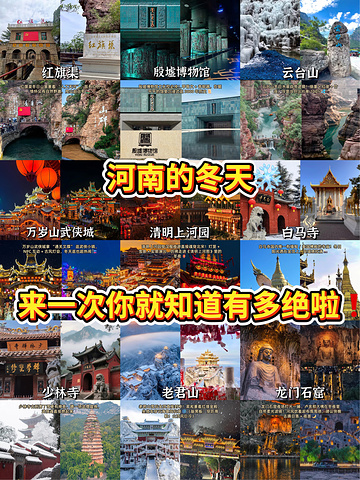 冬季河南:历史与自然交织的旅行之旅 🏞️✨ 冬季的河南,有着丰富的文化底蕴与自然景观,值得一游的景点数不胜数。以下九个必打卡的地方,将带你领略这个古老省份的独特魅力,感受那份历史和自然的震撼。 🏯 龙门石窟:夜幕下的艺术瑰宝 龙门石窟以其精美的佛教雕刻而闻名。晚上来这里,配上华丽的灯光,卢舍那大佛似乎被柔光笼罩,氛围非常浪漫🌙。傍晚时分,与你的朋友一起看日落,无论是夕阳下的河流还是夜景,都让人流连忘返。 🏔️ 老君山:雪中的仙境 如果你喜欢宁静和神秘,老君山雪后的金顶仿佛置身于仙境一般,雾凇红墙形成了梦幻的画面❄️。不过,山顶的风力较大,记得穿上防滑鞋并保暖哦,这样才能安全地享受美景。 🥋 少林寺:武侠之魂复苏 冬季的少林寺更显得庄重和宁静,清晨时分武僧们的晨练唤醒你心中的武侠梦。看他们在雪地中挥舞拳脚,每一招都蕴含着深厚的禅意,让你感受到传统文化的力量。 ⛩️ 白马寺:异国情怀的佛教胜地 白马寺是国内唯一的缅泰风格佛殿,其冬日的金顶散发着异域的魅力📸。在这里,你不仅能够感受到宗教的氛围,还能欣赏到与众不同的建筑美学。 🎭 清明上河园:穿越时空的汉服之旅 来到清明上河园,夜游活动将带你回到北宋的繁华。灯笼与雪景交相辉映,现场演出的表演更让你仿佛置身于历史长河中🏮。 🏰 万岁山武侠城:奇幻的互动体验 在万岁山武侠城,持“通关文牒”你可以和NPC进行互动,参与古风灯会🎏。这个小镇不仅令人怀旧,更增添了不少乐趣,让你在游玩中体验到丰富的文化。 🏞️ 云台山:冬日如画风景 云台山的冬景宛如一幅画卷,绿潭与红崖的搭配让人赏心悦目💦。竹筏漂流在水面上,无论是摄影还是悠闲游玩,这里的出片率绝对100%。 🏺 殷墟博物馆:文化爱好者的天堂 如果你是文化控,殷墟博物馆绝对是你的不二之选📜。这里不仅展出了甲骨文和青铜器,还有浓厚的历史氛围,带你深入了解三千年的辉煌历史。 🌲 红旗渠:人工与自然的奇迹 红旗渠,被称为“人工天河”,神奇地穿山而过,展现出红色的情怀与自然的野趣⛰️。在这里,你不仅能感受到大自然的力量,还能体会到人们顽强奋斗的精神。 这九个景点,每一个都蕴藏着历史与文化的故事,又融合了自然的美丽。这个冬季,带上你的行囊,来河南寻找那些埋藏在时光中的珍宝吧!🌟